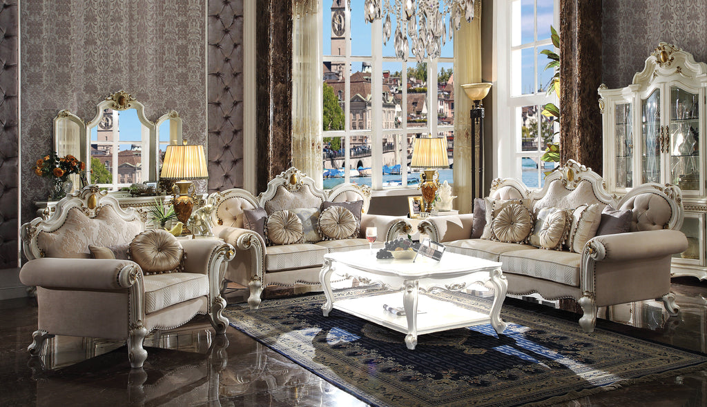 Acme Furniture Picardy Antique Pearl Loveseat with 5 Pillows