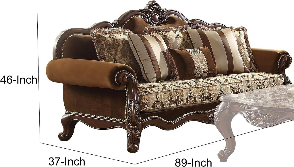 ACME Jardena Sofa with 6 Pillows in Fabric and Cherry Oak Finish
