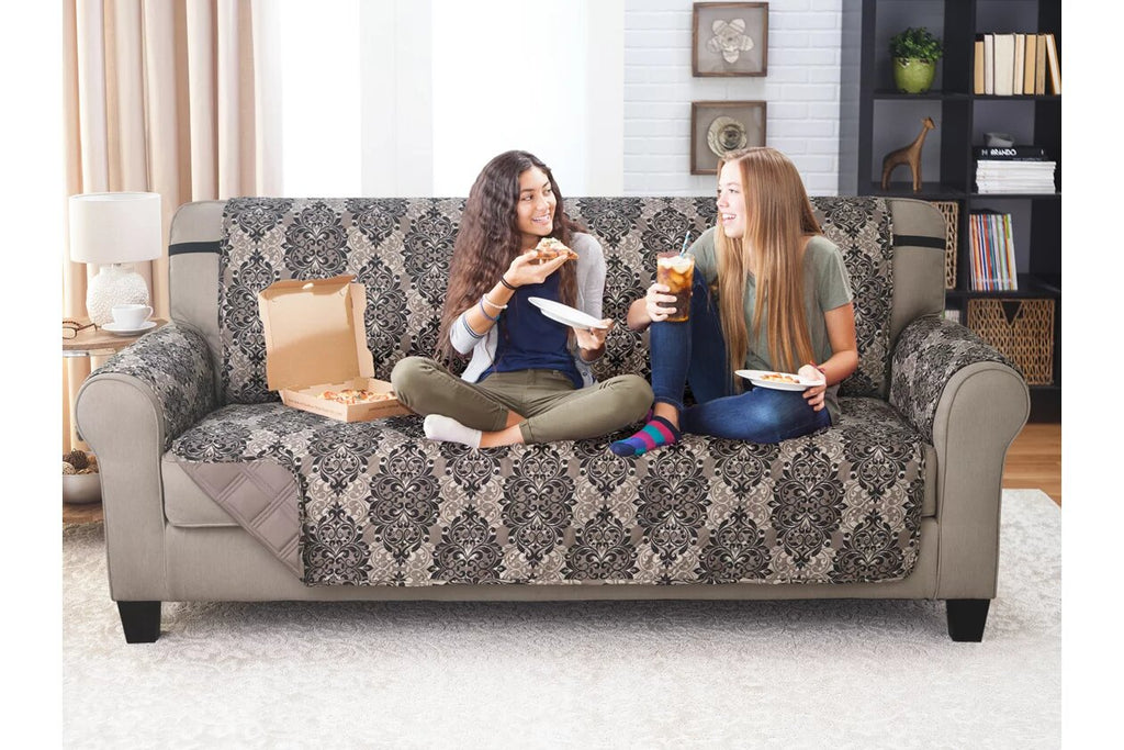 Cover up unsightly upholstery and enjoy a seat that looks good as new with this quilted slipcover. It's machine washable too, so you can always spruce up the look of your sofa in a snap. Durable quilted design, with soil and snag resistancy fits most furniture types. Made of 100 percent microfiber with polyester fill for easy-care.- Reversible