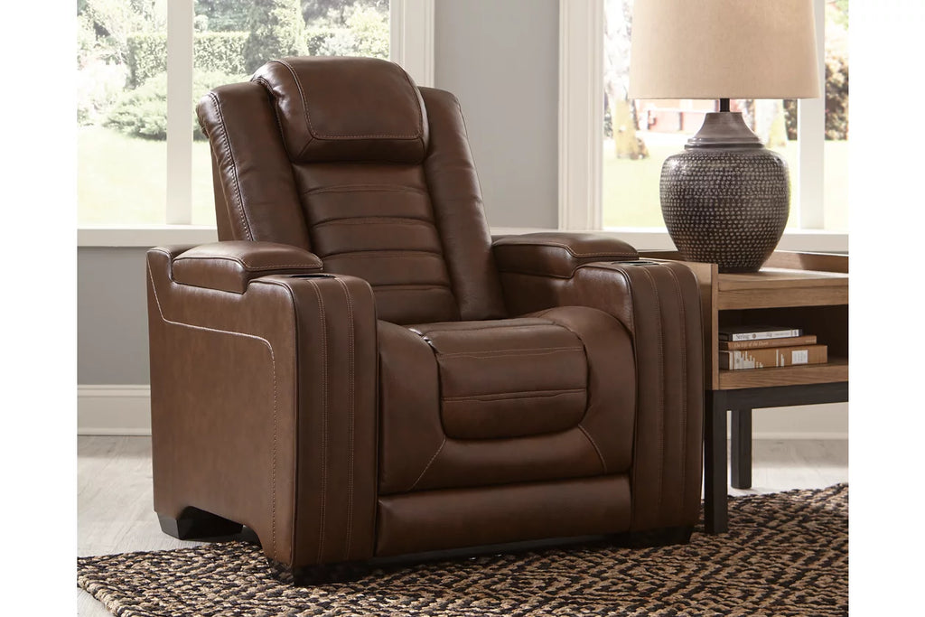 With it's fashion-forward sense of style, this power recliner has you covered with high-tech advancements and down-home comfort. For starters, the seating area and armrests are upholstered in real leather for true indulgence where it matters most. Love being pampered? With the touch of a button, experience the pure bliss of an air massage system (with three settings), or chill out with the heated seat element. Distinctive elements of this power recliner include contemporary waterfall tufting that beautifully goes with the flow and a zero-gravity mechanism further raising the ottoman for better blood flow.