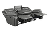 - Motion sofa upholstered in charcoal breathable performance leatherette