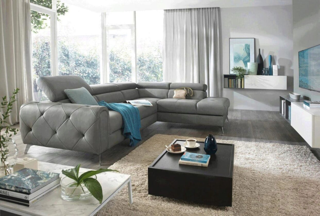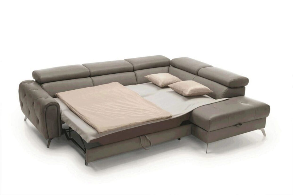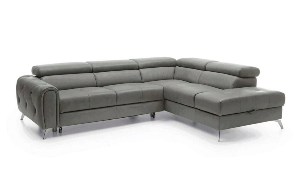 ESF Camelia Modern Grey Italian Genuine Leather Sectional Sofa Bed/Storage