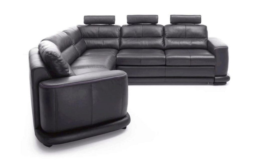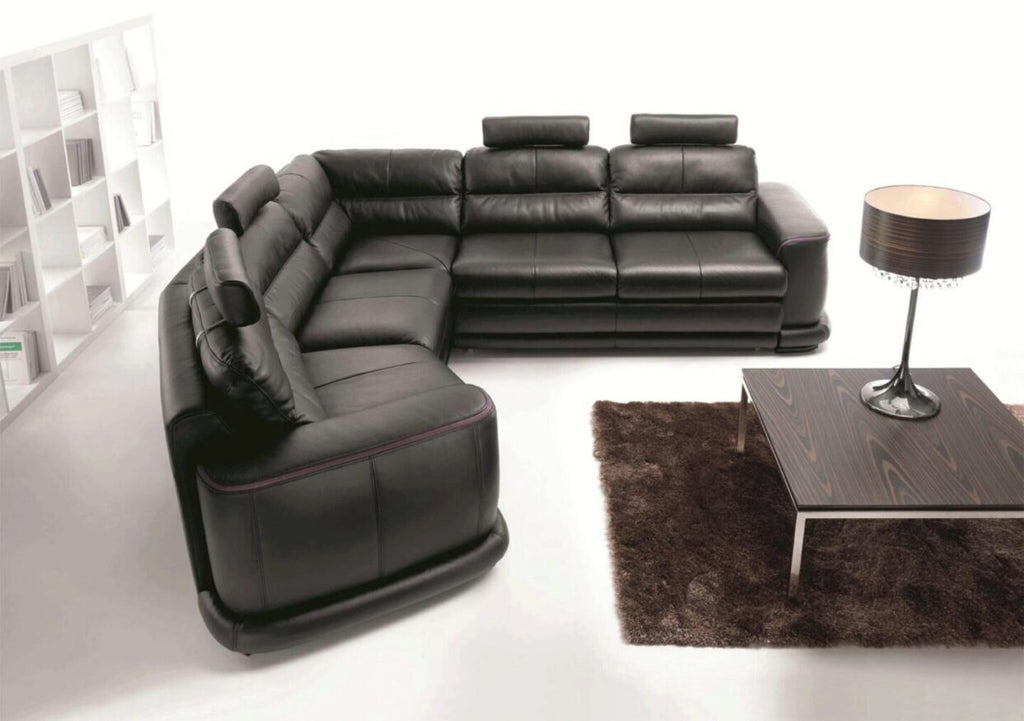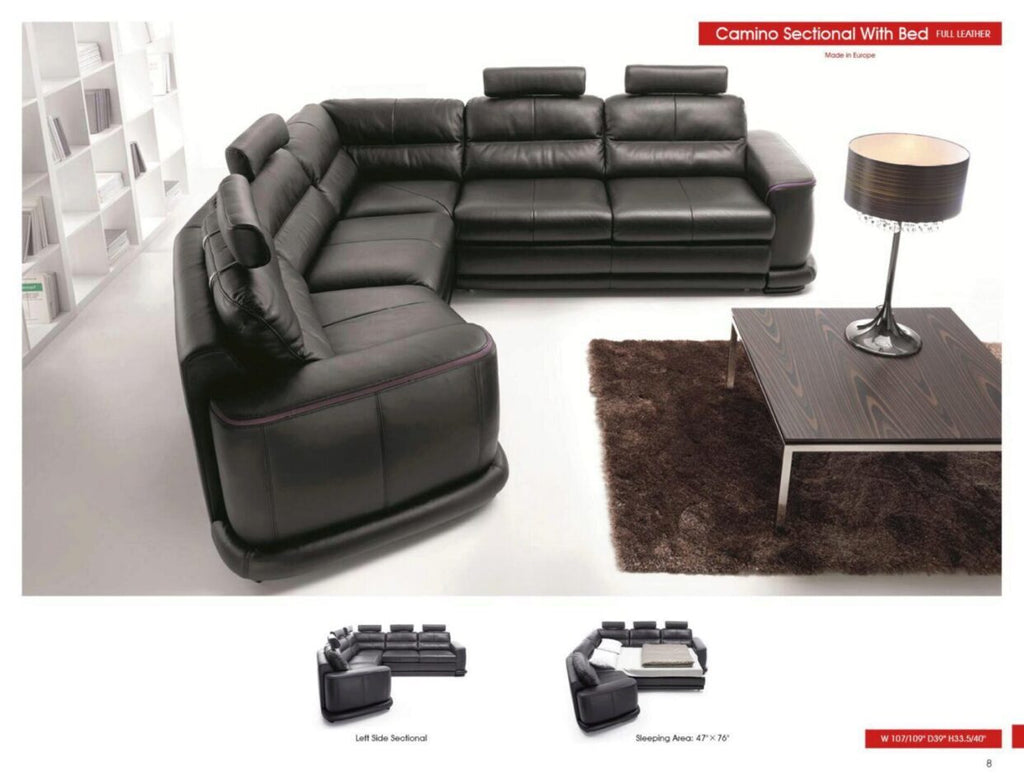 ESF Camino Black Italian Genuine Leather Sectional Sofa Bed