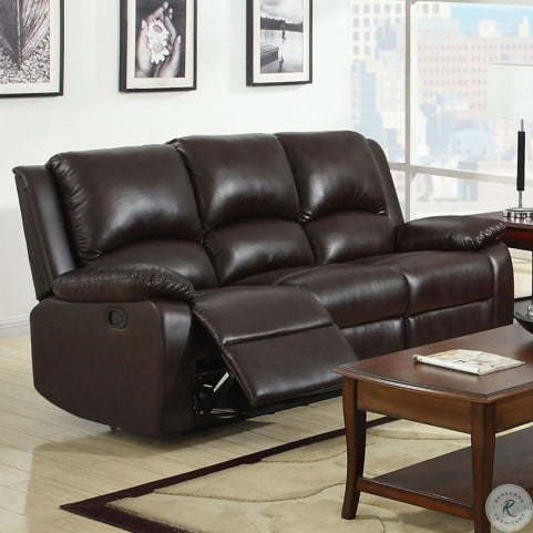 Furniture of America OXFORD SOFA Rustic Dark Brown, Padded Headrest and Recliners