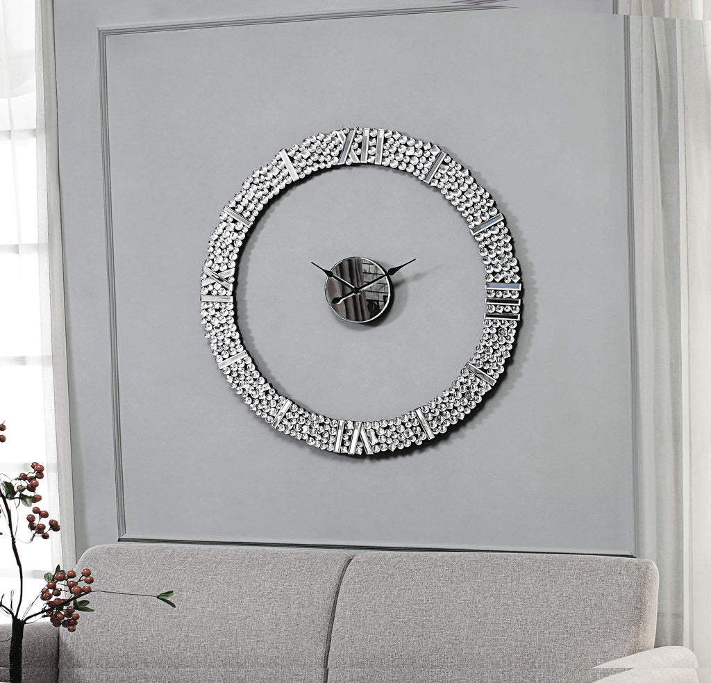 ACME Kachina Wall Clock, Mirrored & Faux Gems, 39"Dia, 20lbs.