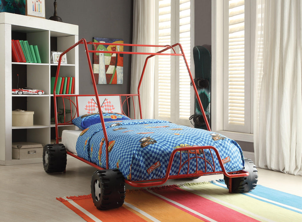 ACME Xander Twin Bed, Red Go Kart (1Set/2Ctn), 84" x 56" x 51"H, 52lbs.